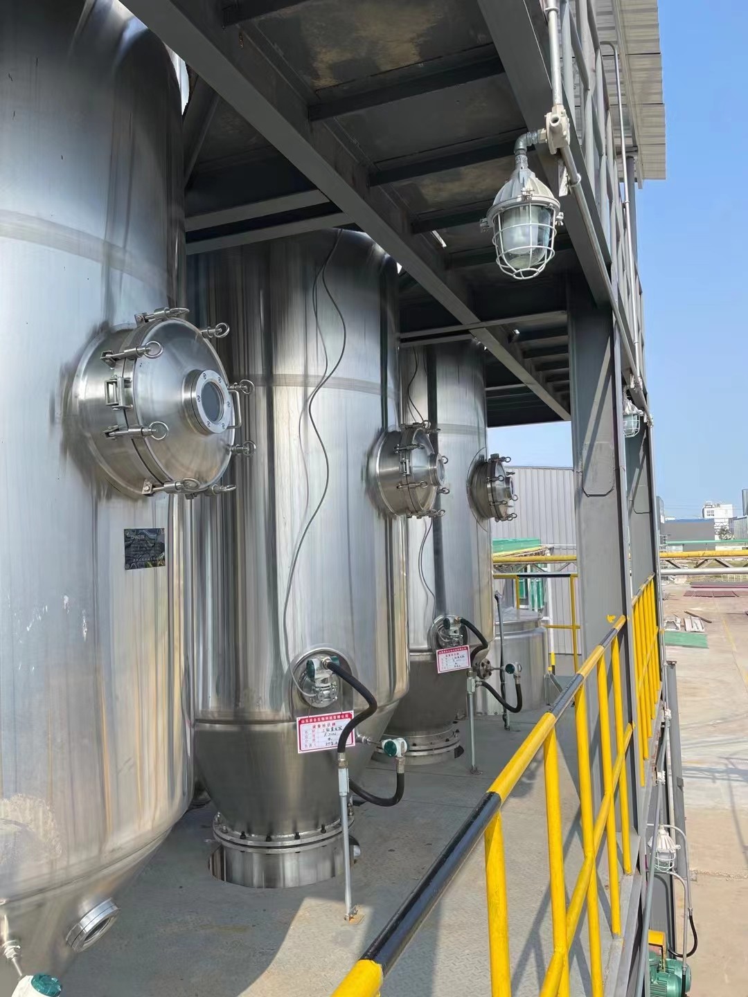 各效加熱器、各效分離器、各效結(jié)晶器、冷凝器(混合式或表面式)、各效強制循環(huán)泵、冷凝水泵、真空泵、操作平臺、電器控制柜、液位自控系統(tǒng)及界內(nèi)管道閥門等組成。