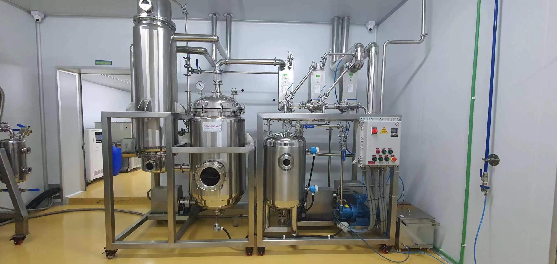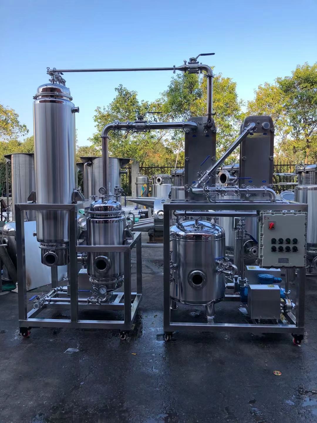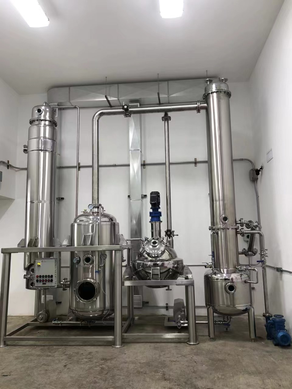系統(tǒng)組成: 各效蒸發(fā)器、各效分離器、冷凝器、熱壓泵、真空泵、各效料液輸送泵、冷凝水泵、操作平臺(tái)、電器控制柜、液位自控系統(tǒng)及閥門(mén)管路等。