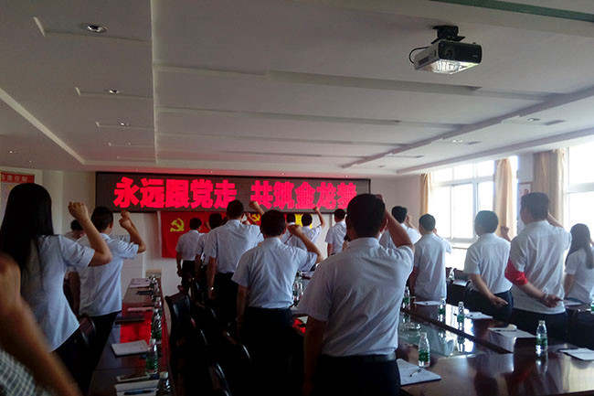 7月1日上午8:30,在中國(guó)共產(chǎn)黨成立94周年之際,湖北金龍集團(tuán)公司黨委組織新老黨員、入黨積極分子,在公司多功能會(huì)議室召開(kāi)了黨員民主生活會(huì),熱烈慶祝黨的生日。